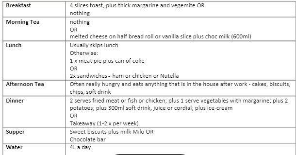 PBHL5001 A record of Alice’s typical food intake is as follows: